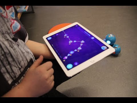 In this video, my daughter demonstrates how she made dash draw the word dot on a piece of paper.